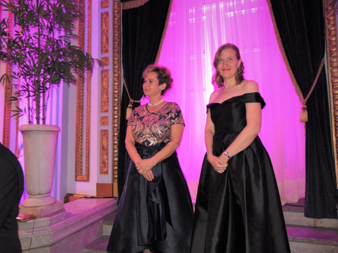 Puis, arrivés à leurs tables, et avant le grand dîner, les invités ont pu écouter les hymnes nationaux suivis des airs d’opéra présentés par des chanteurs d’Opéra McGill.