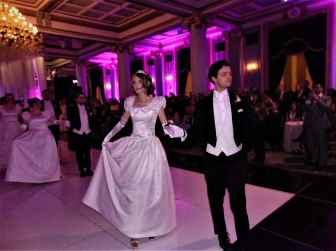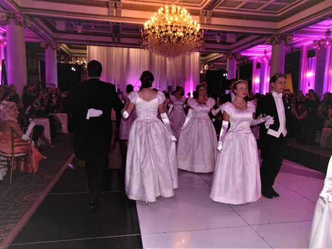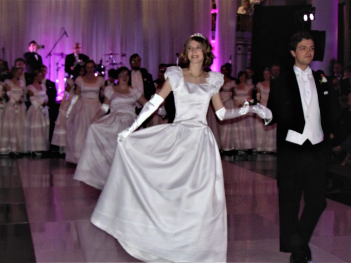 Évidemment, sous la direction de Birgit Klema Erdan, les débutantes suite à une réception musicale de violons, les invités ont eu le plaisir d’assister au spectacle de danse des dix-huit débutantes accompagnées de leur cavalier et les diadèmes parvenus spécialement de Vienne, tout en faisant leur révérence protocolaire aux dignitaires présents. Pour leur part, les jeunes gens portaient l’habit traditionnel avec cravate blanche.
