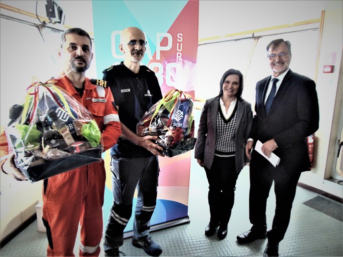 Lors de la 57e cérémonie soulignant l’arrivée du premier navire de l’année au Port de Trois-Rivières, le capitaine, Monsieur Emin Koparan et le chef ingénieur, Monsieur Canbek Yeltin, ont reçu des paniers de produits régionaux ainsi qu’une giclée de l’œuvre créée par Madame Caroline St-Pierre, artiste-peintre de la Mauricie, dans le cadre du 140e anniversaire du Port.