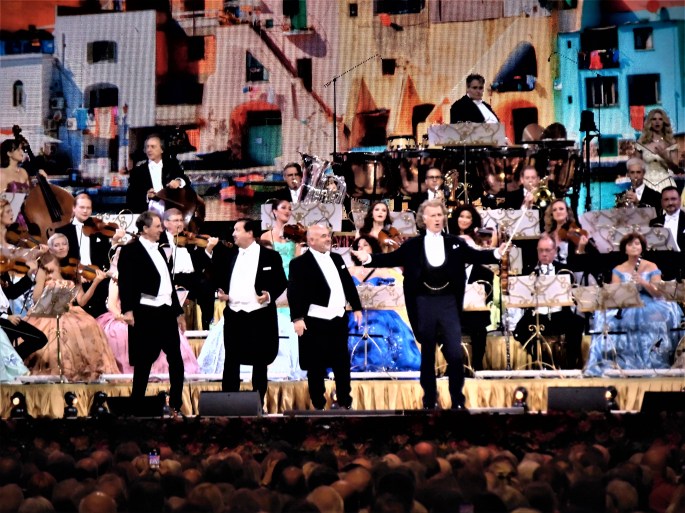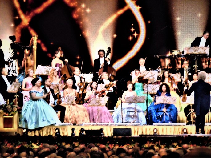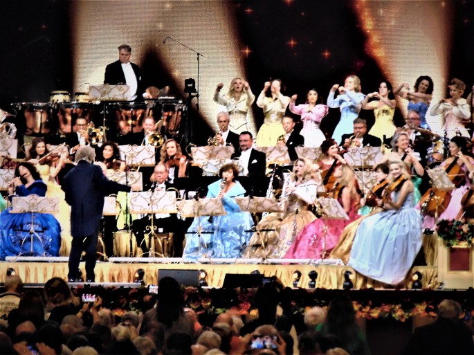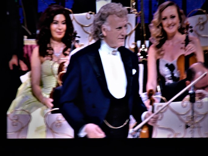 Monsieur Rieu commente toujours les performances de ses musiciens et des pièces qu’ils interprètent et toujours avec le sens du l’humour qui semble une de ses caractéristiques toujours en tenant son fameux violon STRADIVARIUS en main. Celui-ci jouant de cet instrument qu’il maîtrise depuis 65 ans, tout en dirigeant parfois discrètement et aussi avec éclat.