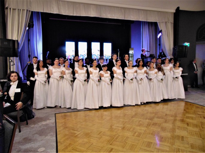 Quant aux quatorze débutantes en robes blanches identiques et diadème venus spécialement d’Autriche, elles ont défilé en faisant la révérence aux dignitaires, pour ensuite entamer avec leurs cavaliers, l’ouverture du bal au son des valses de « Rosen aus dem Süden » (Roses du sud) de Johann Strauss fils. C’est alors qu’a suivi l’appel traditionnel de“Alles Walzer” (– tout le monde valse -) au timbre du « Beau Danube Bleu » de Strauss. Quant à l’ensemble Sophist Occasion Showband, il a interprété des airs traditionnels et modernes jusqu’à 3h00 du matin.