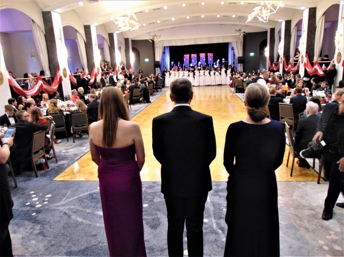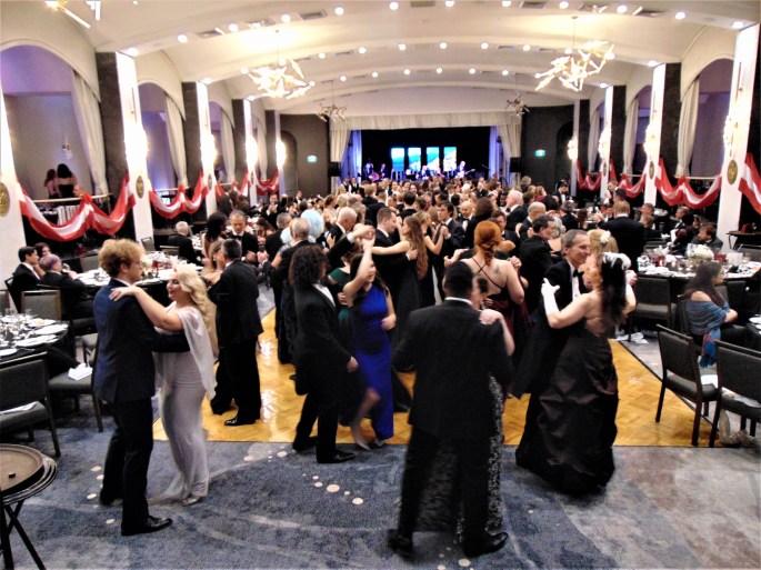 Puis, à la suite d’une réception au champagne avec sérénade de violons, les invités d’honneur ont fait leur entrée dans la salle de bal au timbre de la « Marche de Radetzky » de Johann Strauss père précédant le Dîner Gala qui suivait.