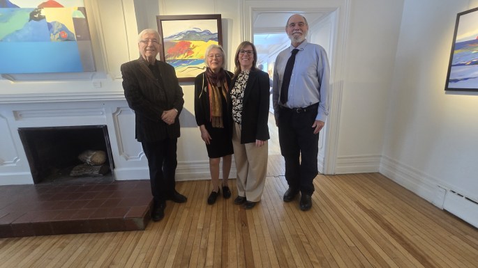 La sélection des œuvres de cette exposition a été réalisée en collaboration avec le professeur et commissaire Norman Cornett (sur la photo à droite) Nous pouvons distinguer à ses côtés le député Louis Plamondon, Hélène Goulet et Karine Bergeron .