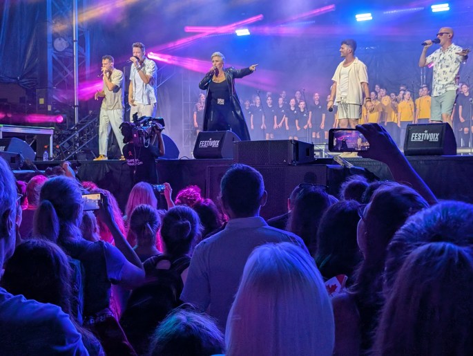 | LE FESTIVOIX : UN SUCCÈS COLLECTIF Le FestiVoix tient à remercier chaleureusement l’ensemble des artistes qui ont performés sur scène, les 550 bénévoles, ses équipes, artisans, fournisseurs et 120 partenaires privés et publics qui ont tous contribué à faire de cette 32e édition un succès retentissant ainsi que le public qui est de plus en plus nombreux et généreux à chaque édition. L’organisation travaille dès à présent à la préparation de sa 33e édition où la diversité de programmation et la qualité de l’expérience qui font l’unicité du festival seront de nouveau à l’honneur! La 33e édition aura lieu du 25 juin au 5 juillet 2026. (Autres Photos: André Bouchard: albp@sympatico.ca) |
