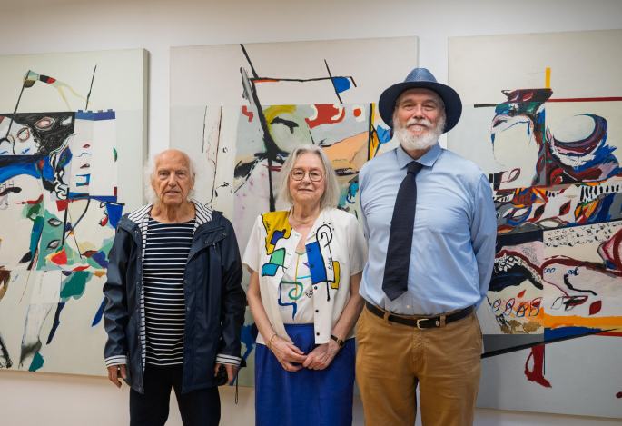 Sur la photo, nous distinguons l’artiste et le professeur Cornett pris lors du vernissage.